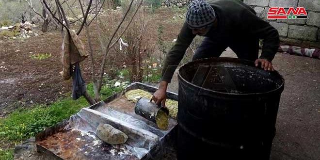 يمتهن معين زكي ملحم من قرية درتي بريف الشيخ بدر في طرطوس حرفة صناعة الصابون كمشروع بيتي صغير لكسب الرزق.