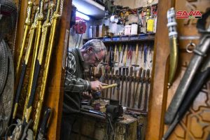 وبعيداً عن القصص والأساطير يحتفظ فياض السيوفي شيخ الكار وأقدم حرفيي صناعة السيوف بأسرار المهنة التي حمل اسمها وتوارثها عن أجداده منذ 37 عاماً ورغم قلة مردودها والطلب عليها إلا أنه لا يزال يمارسها ضمن ورشته الصغيرة في سوق المهن اليدوية بدمشق لعشقه لها وخوفه من اندثارها كما يقول لمراسلة سانا.