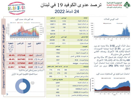 وسجل لبنان أمس 20 حالة وفاة و3748 إصابة بالفيروس.