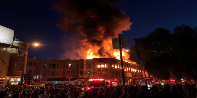 أصيب ثمانية اشخاص جراء اندلاع حريق في مبنى سكني جنوب السوق المركزي بمدينة سان فرانسسكو الأمريكية.