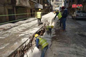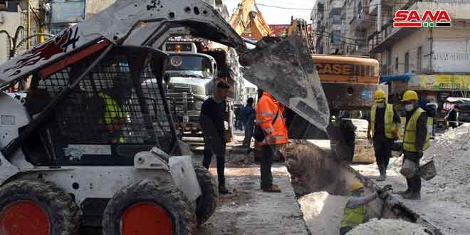 وبين رئيس جهاز الاشراف على المشروع المهندس مصطفى الشيخ أن العمل جار على استبدال أقنية الصرف الصحي المهترئة بقساطل جديدة إضافة لأعمال الحفر وتركيب القساطل والردم والبيتون المسلح واعادة التزفيت التي تتم بشكل سريع لإنجاز المشروع بخبرات وطنية والحفاظ على السلامة الإنشائية للأبنية المتضررة جراء تسريبات المياه.
