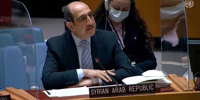 وأوضح صباغ أن سورية دأبت على موافاة لجنة القرار 1540 والأمانة العامة للأمم المتحدة بمعلومات حول حيازة واستخدام التنظيمات الإرهابية مواد كيميائية أو فبركة حوادث كيميائية في سورية ومن بينها حيازة عناصر من تنظيم “جبهة النصرة” الإرهابي مواد كيميائية سامة وصواريخ تم تعديلها وتسليحها بهذه المواد السامة في محافظة إدلب تحضيراً لفبركة حادث كيميائي لتوجيه اتهامات للجيش العربي السوري وحلفائه وذلك بناء على تعليمات من دوائر استخباراتية أجنبية مبينا أن عدداً من إرهابيي “جبهة النصرة” تعرضوا مؤخراً لحروق وحالات اختناق عند محاولتهم نقل حاويات تحوي مواد كيميائية سامة في محافظة إدلب.