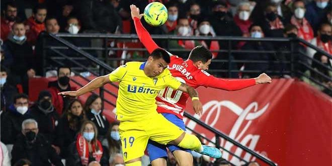 تعادل فريق غرناطة مع ضيفه قادش دون أهداف في المباراة التي جمعتهما ضمن منافسات الجولة الـ 26 من الدوري الإسباني لكرة القدم “الليغا”.