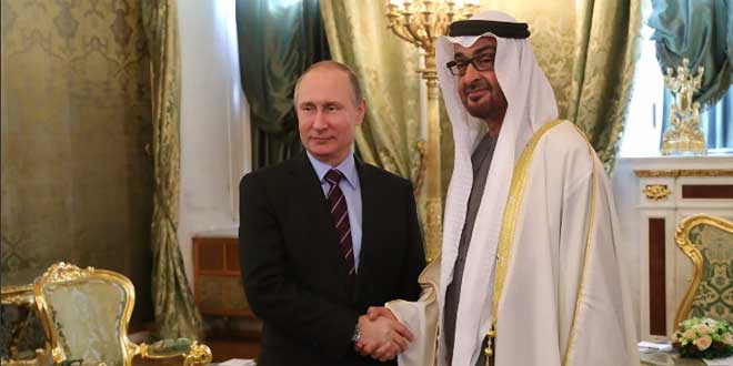 بحث الرئيس الروسي فلاديمير بوتين مع ولي عهد أبوظبي نائب القائد الأعلى للقوات المسلحة الإماراتية محمد بن زايد آل نهيان الوضع في أوكرانيا.