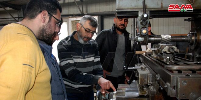 أما محمد الموسى مدرب الميكانيك فيقول: ندرب الطلبة على أجزاء المحرك الميكانيكي للآليات الثابتة والمتحركة وانظمة المحرك واستطاعته للإحاطة بطريقة عمله حيث تضم الورشات تدريباً عالياً على محركات ديزل وبنزين للسيارات الصغيرة إضافة إلى محركات التركس.