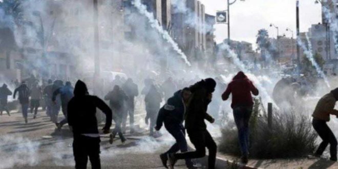 أصيب عشرات الفلسطينيين اليوم من جراء قمع قوات الاحتلال الإسرائيلي مظاهرة وسط مدينة الخليل في الضفة الغربية.