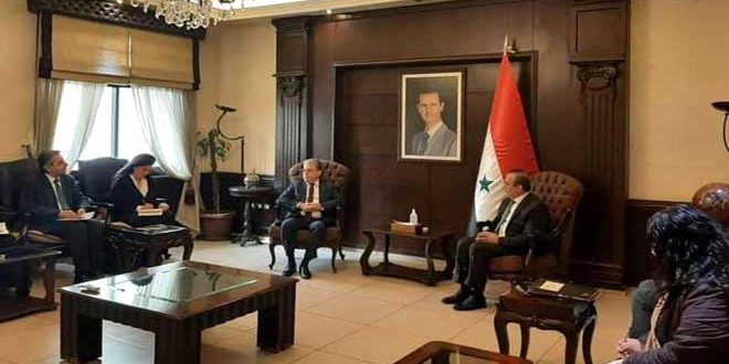 بحث وزير الإدارة المحلية والبيئة ورئيس اللجنة العليا للإغاثة المهندس حسين مخلوف مع الممثل بالإنابة لصندوق الأمم المتحدة للسكان في سورية كارين دادوريان سبل تطوير آليات العمل وتعميق التعاون المشترك بين الجانبين في المجال الإنساني وصولاً إلى مرحلة التعافي.