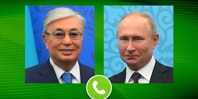 بحث الرئيسان الروسي فلاديمير بوتين والكازاخستاني قاسم جومارت توكايف في اتصال هاتفي اليوم الوضع حول العملية العسكرية الروسية في أوكرانيا.