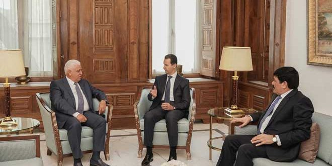 استقبل السيد الرئيس بشار الأسد رئيس هيئة الحشد الشعبي في العراق فالح الفياض وناقش معه مجالات التعاون القائم بين البلدين وخصوصاً المواضيع الأمنية المشتركة والتي تتعلق بضبط الحدود ومكافحة التنظيمات الإرهابية الموجودة في تلك المنطقة.