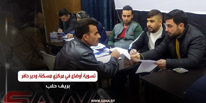 حلب-سانا تواصلت اليوم عملية التسوية في بلدة مسكنة بريف حلب الشرقي.