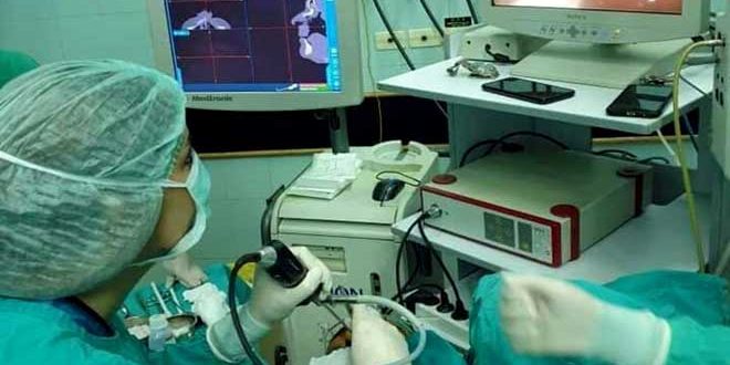 أجرى فريق طبي في الهيئة العامة لمشفى دمشق “المجتهد” جراحة تنظيرية موجهة بطريقة الملاحة لاستئصال كرة فطرية معزولة بالجيب الجبهي لمريض أربعيني وهي حالة نادرة عالمياً حسب المشرفة عليها الدكتورة رزان الجاسم.