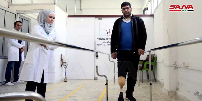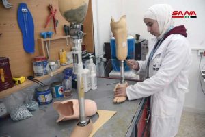 وأوضحت زينب خولا مؤسس ورئيس مجلس إدارة الجمعية لمراسل سانا أن العمل مستمر لإنتاج وتوزيع المعينات الحركية والأطراف الصناعية بعد إعادة تأهيل مبنى الجمعية الذي تعرض للتخريب والتدمير جراء الإرهاب في حي مساكن هنانو حيث يتم تصنيع العكازات والكراسي المدولبة بصالات الإنتاج إضافة لتركيب الأطراف الصناعية لتمكين من فقد أحد أطرافه من العودة إلى الحركة بشكل طبيعي.