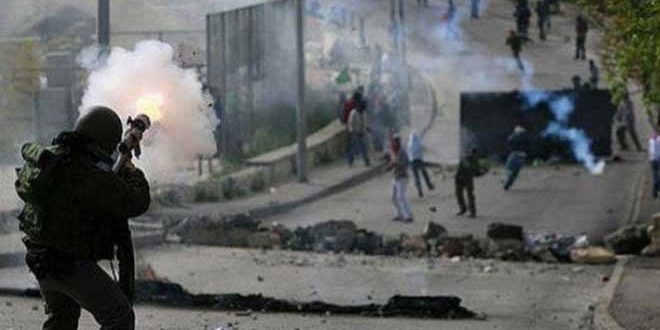 أصيب عشرات الفلسطينيين اليوم جراء قمع قوات الاحتلال الإسرائيلي مظاهرة تندد بتوسيعه حاجزاً عسكرياً على مدخل شارع الشهداء في باب الزاوية وسط مدينة الخليل بالضفة الغربية.