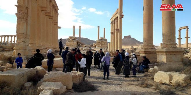 زارت مجموعة سياحية مؤلفة من 25 شخصاً مدينة تدمر التاريخية شارك فيها مديرو مكاتب سياحة وسفر وأساتذة جامعات ومختصون بالشأن الثقافي وأدلاء سياحيون من عدد من المحافظات السورية.