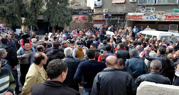 تجمع شعبي على مدخل مخيم اليرموك للمطالبة بخروج الإرهابيين- فيديو