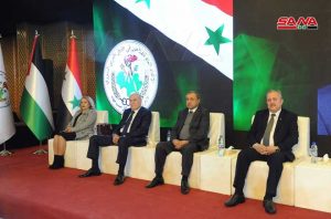 وزير الزراعة والإصلاح الزراعي المهندس محمد حسان قطنا أوضح في كلمة أن القطاع الزراعي أثبت أنه قادر على مواجهة التحديات وتوفير الأمن الغذائي لأبناء الشعب وأن الفلاحين رغم الحرب والجفاف والتغيرات المناخية والحصار والتدابير القسرية استمروا بالإنتاج واستطاعوا توفير معظم احتياجات السكان والقطاعات الأخرى من المنتجات الزراعية.