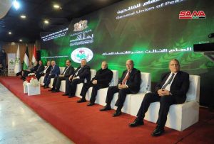 تحت رعاية السيد الرئيس بشار الأسد بدأت اليوم أعمال المؤتمر العام الثالث عشر للاتحاد العام للفلاحين تحت شعار (الأمل بالعمل.. الأمل بالزراعة) في مجمع صحارى بريف دمشق بحضور الأمين العام المساعد لحزب البعث العربي الاشتراكي المهندس هلال الهلال ممثلاً لرئيس الجمهورية ورئيس مجلس الشعب حموده صباغ ورئيس مجلس الوزراء المهندس حسين عرنوس.