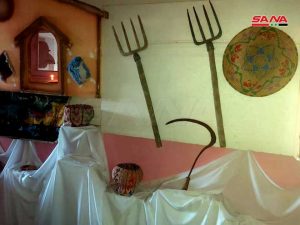 وضم المعرض التراثي الذي استضافته مدرسة الأنشطة التطبيقية بمشاركة مدارس الأنشطة التطبيقية في كل من المدينة وشهبا والقريا وصلخد وفقاً للمشرف خزاعي السمان عناصر ومفردات متعددة من الموروث المادي من أعمال ومشغولات يدوية ومجسمات تعكس مكونات المضافة ومحتوياتها إضافة إلى أدوات زراعية تراثية وأزياء في العرس الشعبي ومجسمات لأبرز المعالم الاثرية والحضارية في المحافظة وصناعة السجاد اليدوي والفخار والأشغال اليدوية بالصنارة وتدوير الأقمشة ومخلفات البيئة.