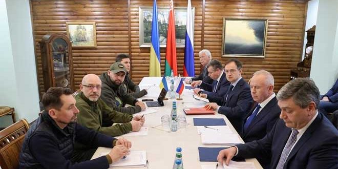 وبدأت في وقت سابق اليوم الجولة الثالثة من المفاوضات بين روسيا وأوكرانيا في منطقة بيلافيجسكايا بوشا البيلاروسية بينما أجريت الجولة الأولى من المفاوضات بين الجانبين في محافظة غوميل في بيلاروس في الـ 28 من شباط الماضي والثانية في محافظة بريست البيلاروسية الخميس الماضي.