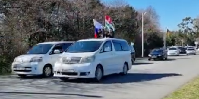 نظمت جمعية السائقين الأبخازيين ومنظمة المستقبل للشبيبة مظاهرة تضامنية في العاصمة سوخومي دعماً لروسيا في مواجهة العقوبات والضغوطات الغربية.