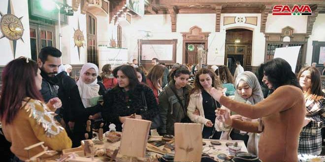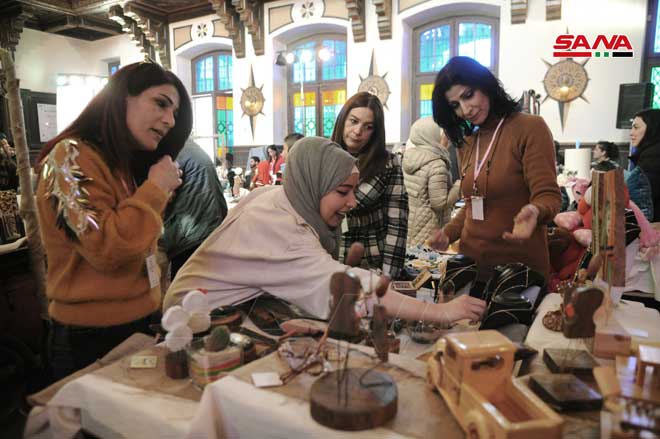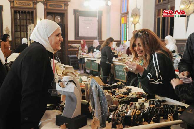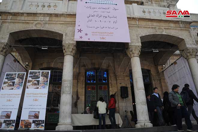 لليوم الثاني على التوالي يتواصل في القاعة الدمشقية بمحطة الحجاز بدمشق سوق “منتجات سوريات” الذي تنظمه الشركة السورية للحرف أحد برامج الأمانة السورية للتنمية احتفاء بعيد المرأة العالمي.