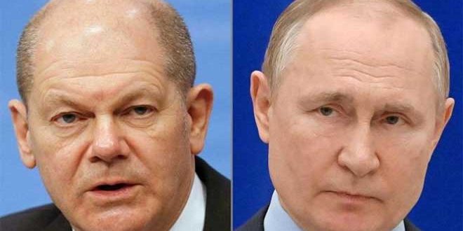 بحث الرئيس الروسي فلاديمير بوتين في اتصال هاتفي اليوم مع المستشار الألماني أولاف شولتس الوضع في أوكرانيا.