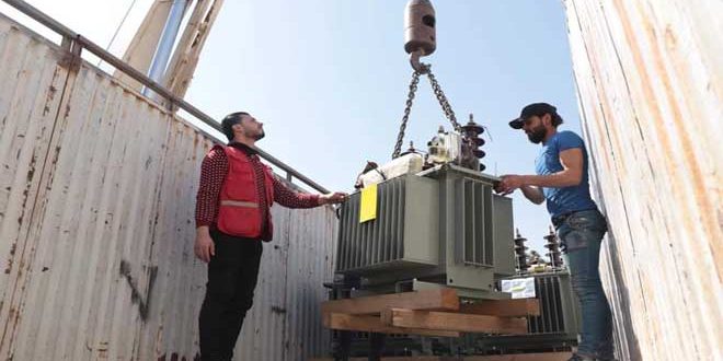 أمن فرع الهلال الأحمر العربي السوري بدرعا 43 محولة كهربائية باستطاعات مختلفة لتحسين خدمات المياه والكهرباء في منازل المواطنين بالمحافظة.