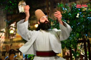 رقص المولوية والإنشاد الديني والموشحات جزء من التقاليد السورية والدمشقية خاصة في شهر رمضان والمناسبات الدينية وأحد الطقوس الاجتماعية ومن مفردات التراث اللامادي للمنطقة بما يحمله من بعد روحي وفني وموسيقي وأدبي وثقافي.
