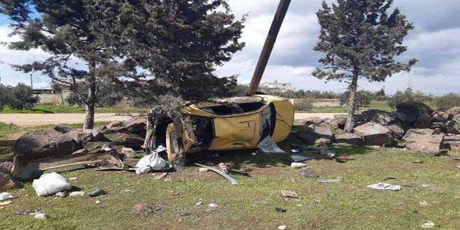 وذكر مصدر في شرطة المحافظة بتصريح لمراسل سانا اليوم أن سيارة سياحية عامة يستقلها أربعة أشخاص من بينهم ثلاثة أطفال تدهورت اليوم على الطريق العام ما اسفر عن إصابتهم بجروح متفاوتة الخطورة تم على إثرها إسعافهم لمشفى حماة الوطني لتلقي العلاج اللازم.