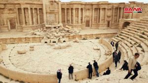 توافد إلى مدينة تدمر التاريخية اليوم وأمس عدد من المجموعات السياحية الأجنبية من جنسيات مختلفة بهدف الاطلاع على المواقع الأثرية وتوثيق الدمار الذي لحق بالآثار من جراء اعتداءات تنظيم “داعش” الإرهابي على إرثها الحضاري قبل اندحاره من المدينة على أيدي أبطال الجيش العربي السوري.