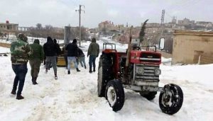 عمل مجلس بلدة طربا بريف السويداء الشرقي اليوم على سحب وتأمين عدد من سيارات المواطنين العالقة بالثلوج والجليد بين قريتي طربا وأم ضبيب جراء الحالة الجوية السائدة.