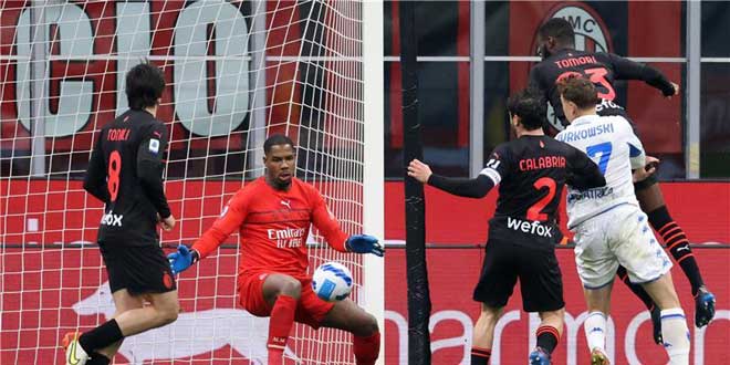 تغلب ميلان على ضيفه إمبولي بهدف دون مقابل في المباراة التي جمعتهما أمس ضمن منافسات الجولة الـ 29 من الدوري الإيطالي لكرة القدم.