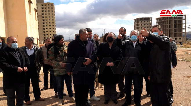 وجال المهندس عرنوس على عدد من الأبراج واستمع من المهندسين المشرفين إلى شرح حول عملية إكساء المقاسم المنجزة، مؤكداً على الدقة في عملية الإكساء والالتزام بالمواصفات المتفق عليها في العقود مع شركات القطاعين العام والخاص وتنفيذ المشروع وفق المراحل الزمنية المحددة، ومشدداً على استنهاض كل طاقات العمل والإسراع بإنجاز المشروع وتسليم المقاسم إلى المستفيدين بمن فيهم أصحاب الأراضي المستملكة المستحقون.