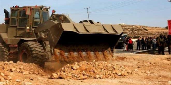 وذكرت وكالة وفا أن قوات الاحتلال اقتحمت منطقة الحمرا في القرية وجرفت 45 دونماً زراعياً لشق طريق استيطاني ووضعت أكوام التراب فوق عشرات أشجار الزيتون المزروعة بالمنطقة.