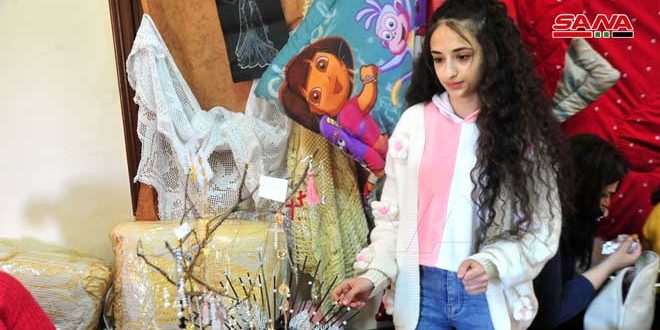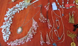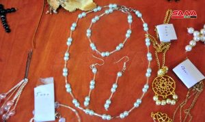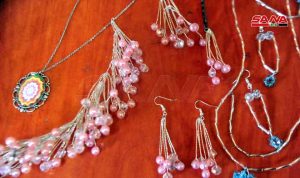 ساعات متواصلة تقضيها الشابة آية بالعمل لتصميم الاكسسوارات ضمن منزلها لتقوم بعرض إنتاجها وتسويقه وتلبية طلبات الزبائن مع حرصها على التواجد بالمعارض التي توجه لها دعوة للمشاركة بها.
