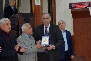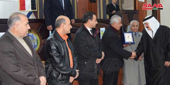 الحفل الذي نظمته جمعية صفصاف الخابور الثقافية وفرع اتحاد الكتاب العرب بالتعاون مع كلية الحقوق شمل تكريم كل من الدكتور خلف الجراد والشاعرة جازية طعيمة والقاص محمد نديم والباحثين الراحل الدكتور سهيل عروسي وصالح المسلط ومحمد السموري والأديب علاء الدين حسن.