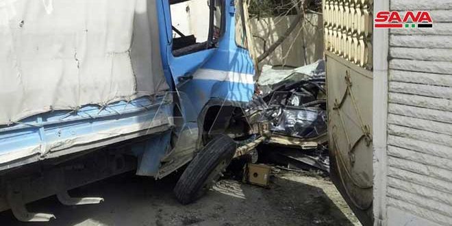 توفي شخص وأصيب أربعة آخرون اليوم نتيجة تدهور سيارة شاحنة واصطدامها بثلاث سيارات أخرى على طريق دمر باتجاه المزة في دمشق.