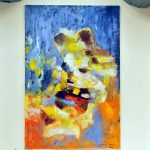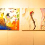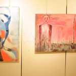 المعرض الذي يستضيفه حالياً غاليري البيت الأزرق ضم 17 لوحة جاءت اثنتان منها بحجم كبير جداً و10 أخرى بحجم كبير والباقي بأحجام متوسطة وبتقنيات مختلفة غلب عليها الأكريليك على قماش وبأساليب تنوعت بين التعبيرية الحديثة والتعبيرية المقتربة من التجريد والتجريد وبصياغات لونية قوية تتسم بالجرأة.