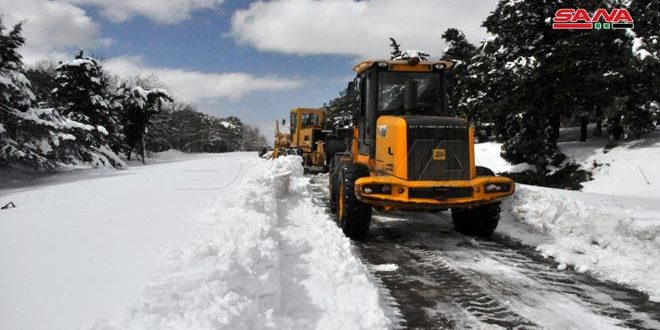 وبينت إدارة المرور في نشرتها الصباحية أن كل الطرق في محافظة ريف دمشق سالكة عدا طريق عرنة قلعة جندل بقعسم في منطقة قطنا سالكة بصعوبة بسبب تراكم الثلوج.