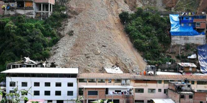 فقد 15 شخصاً على الأقل بعدما جرف انزلاق للتربة عشرات المنازل على سفح تل في قرية شمال البيرو.