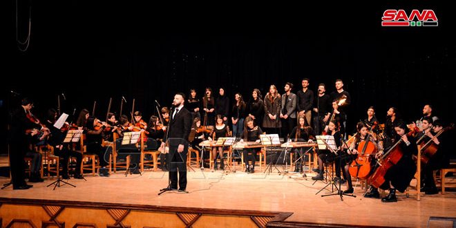 في رحلة خالصة داخل أروقة القدود الحلبية احتفى معهد محمود العجان للموسيقا في اللاذقية بالذكرى الثامنة لتأسيسه في أمسية موسيقية غنائية جاءت بعنوان “صناجة العرب صباح فخري” على مسرح دار الأسد للثقافة الاحتفالية جمعت بين طلاب المعهد وموسيقيين من الاتحاد الوطني لطلبة سورية كتحية لروح الفنان الكبير صباح فخري الذي كان أحد أهم أعمدة القدود وعمالقة الطرب في الوطن العربي فكان سفيراً وخير من حمل القد إلى أهم مسارح العالم وجعل منه أيقونة للغناء العربي والموسيقا الأصيلة تاركاً خلفه إرثاً موسيقياً كبيراً.