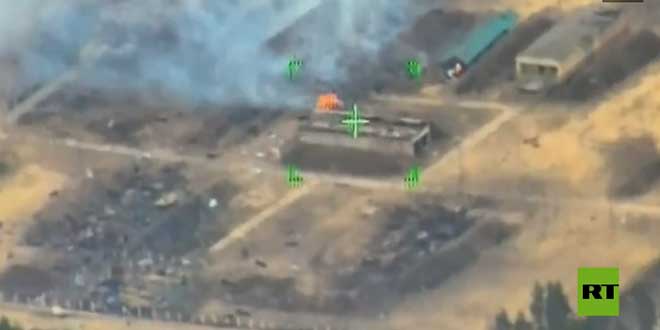 نشرت وزارة الدفاع الروسية فيديو يظهر قيام طائرات هجومية روسية من طراز (سو 25) بتدمير أهداف للبنية التحتية العسكرية للقوات الأوكرانية.