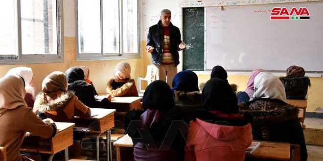 يقف مدرس الرياضيات وليد إبراهيم اليوم بين طلابه في ثانوية الشهيد محمد صبري مريم في منطقة النشابية بريف دمشق متابعاً بشغف مهنته التي بداها منذ 16 عاماً ولم يتركها حتى في أصعب الظروف التي تمثلت بتواجد الإرهابيين في عدد من مناطق ريف دمشق.