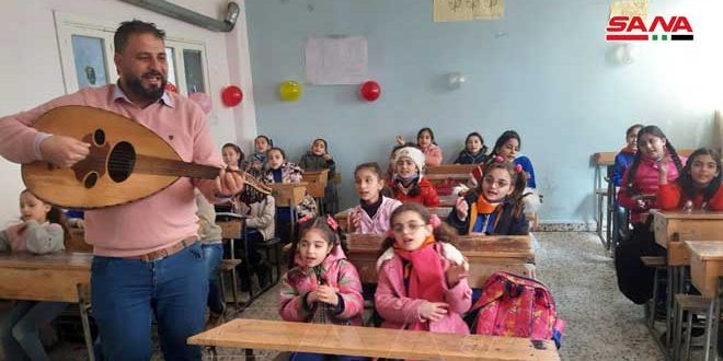 ويقول علي 36 عاماً لمراسلة سانا: “أديت رسالتي في حمل البندقية على جبهات القتال ضد الإرهابيين واليوم أكمل رسالتي مع أطفال المستقبل كمعلم لمادة الموسيقا أحمل عودي وأزرع في قلوبهم الحس الموسيقي لتوجيههم نحو الموسيقا والفن من خلال الأغاني الهادفة”.