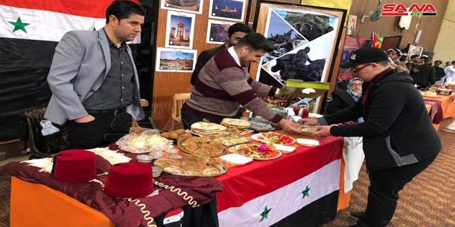 بدوره أوضح الدكتور فياض العلي عضو قيادة فرع مصر ورئيس مكتب الثقافة بالاتحاد الوطني لطلبة سورية أن مشاركة طلبتنا تميزت بقسم خاص بالمعروضات والمأكولات السورية ولقيت هذه المشاركة في هذا اليوم الثقافي ترحيباً كبيراً من المشاركين والحضور كافة.