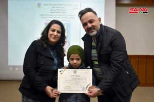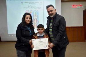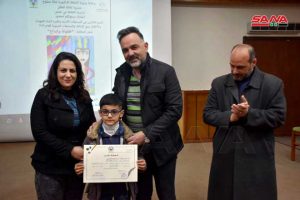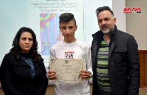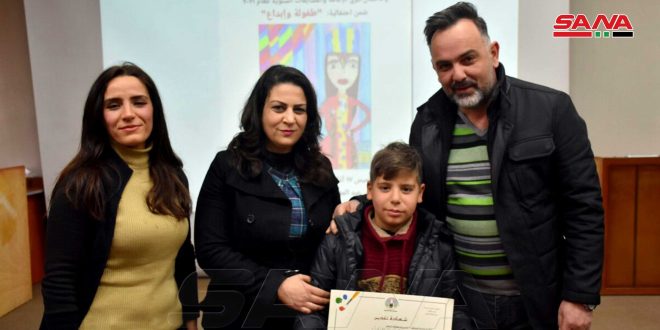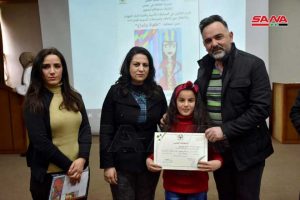27 طفلاً ويافعاً من أبناء حمص الفائزين في المسابقات الأدبية والفنية المركزية في اختصاصات الرسم والتصوير الضوئي والمقالة والقصة والخط العربي استحقوا التكريم في احتفال استضافه المركز الثقافي في المدينة.