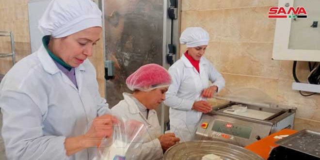 لم تتوقف آلات معمل ألبان وأجبان مبقرة فديو باللاذقية عن العمل خلال عطلة عيد الأم فالعاملات فيه أردن الاحتفال بهذا اليوم على طريقتهن في استمرار العمل والإنتاج ومعايدة الأسر ممن ينتظرون إنتاج المعمل يومياً.