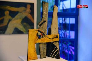 المعرض الذي يستضيفه غاليري البيت الأزرق ضم نحو 35 عملاً فنياً بين لوحات وأعمال تركيبية خشبية بأساليب تعبيرية لامست التجريد وفي بعضها كانت بأسلوب تجريدي صريح وبتقنيات تعددت بين الاكريليك على قماش ومواد مختلفة على ورق.