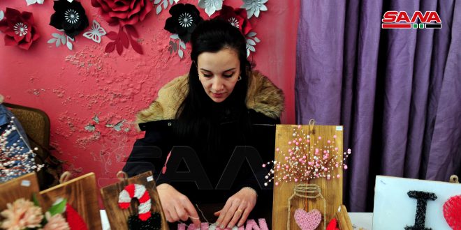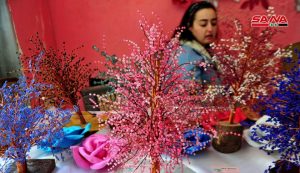 بأناملها المتقنة للعمل الفني ومهارتها اليدوية نسجت الشابة أمل الجرمقاني من محافظة السويداء خيوط مشروع متناهي الصغر أطلقته قبل عام ونصف العام مضمنة إياه أعمال متنوعة كمجسمات الورود وأشجار الزينة واللوحات الفنية.