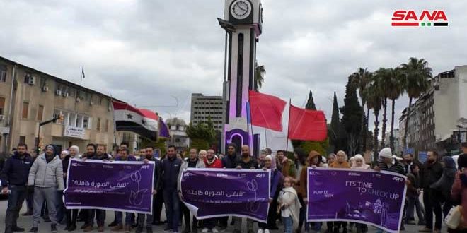 عشرات الشباب والشابات من أبناء مدينة حمص شاركوا مؤخراً في مسير الزرق الذي حمل عنوان “لتبقى الصورة كاملة” والذي أقيم بهدف التوعية بخطورة مرض الزرق وضرورة إجراء الفحص الدوري لاكتشافه مبكراً.